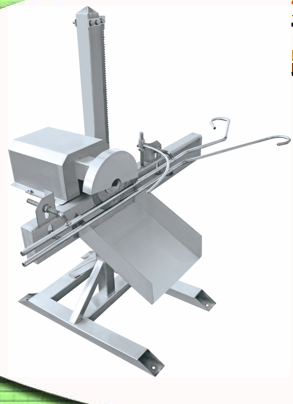 产品概述该机结构紧凑,接入肉鸡生产流水线中,跟随流水线节拍,实现自动在线割头。结构特征:1、采用卡位式设计,结构简单、切割位置准确,合格率高。2、肉鸡鸡头在流水线运行中,自动进入卡位;由电机带动切刀进行切割。主要技术参数:外形尺寸:1500*750*1150mm2、设备总功率:0.75KW